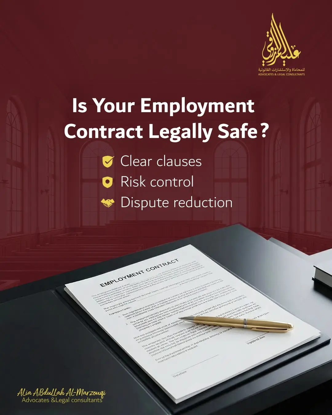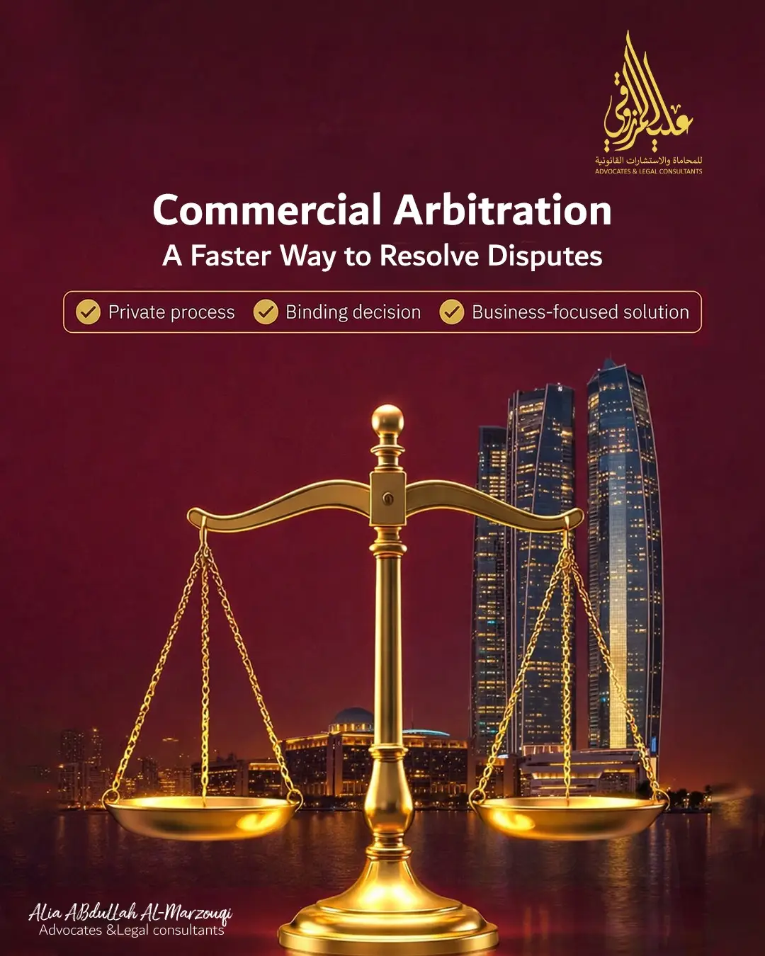 Alia Abdullah Al Marzooqi Advocates & Legal Consultancy is a leading UAE law firm delivering integrated legal services through a structured approach and clear strategic vision.